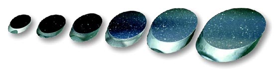 These elliptical flat pyrex mirrors are flat to 1/10 wave, enhanced