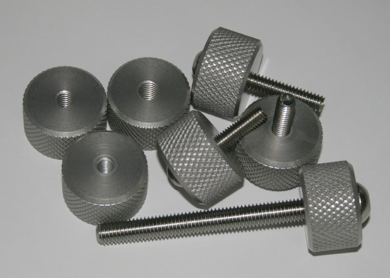 Knurled Thumb Knobs and Bolts, Anodized Aluminum