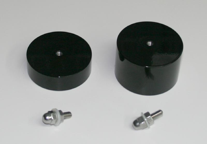 thick, both are 2.5" diameter. Powder coated black, 1/4-20 threads.