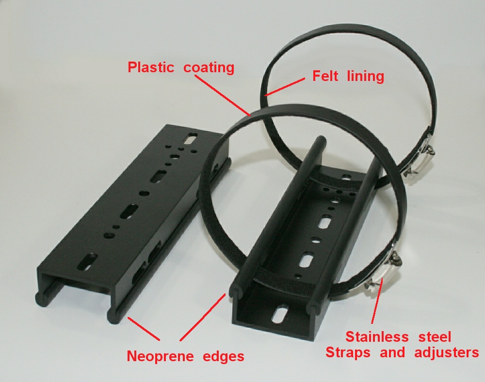 edges cradles the scope tube, and felt lined straps hold everything in place.