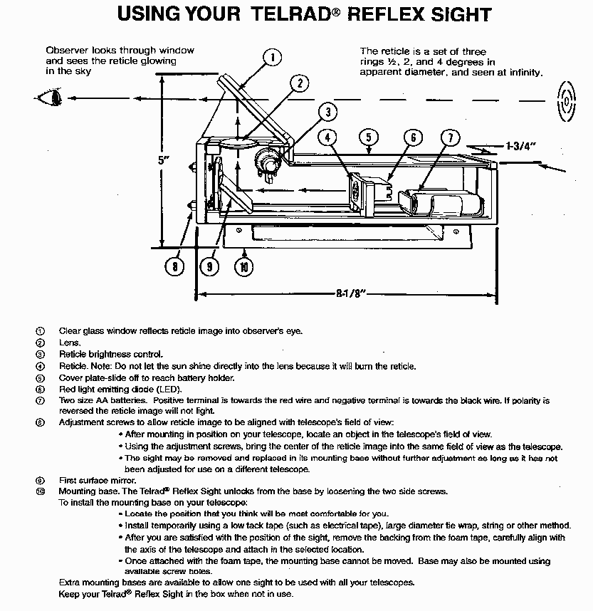 The original Telrad(R) reflex sight provides a red lighted 'target'
