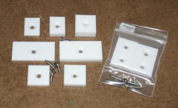 $17.00 - #TP83 - Four Virgin White PTFE Pads, 1/8" Thick, 3/4" x 1", Drilled and Countersunk, With Screws